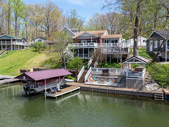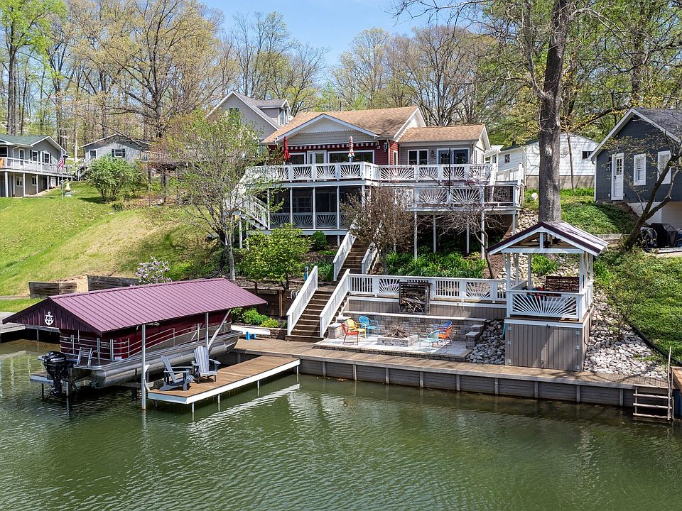 Gorgeous East Princes Lake Home! When looking at a Lakehouse, Outside amenities 1st. And this home has them ALL!... Dock with motorized boat lift, fire pit, doggie swim-up ramp, kayak launch platform, waterfront screened in porch, lakeside storage, relaxing lounge area to disconnect w/ceiling fans, stairway water access to swim/relax directly off dock in a quiet cove(idle speeds), shaded outdoor dining area when escaping the sun is desired, 4 car garage, 4 additional parking spots, multi-level decks and patios. About the Home...Updated Kitchen, Vaulted wood ceilings, tons of light and views. 2 Bedrooms, Bonus room is used as bedroom, 2.5 baths, custom tile shower w/2 shower heads to rinse off a day on the lake. NEW: HVAC, siding w/Tyvek house wrap, interior perimeter drain w/ lifetime warrantee, tankless water heater, water softener... Stunning Lake property that is conveniently located 45 minutes from Indianapolis allowing owners to connect with nature. Trails Nearby for hiking.