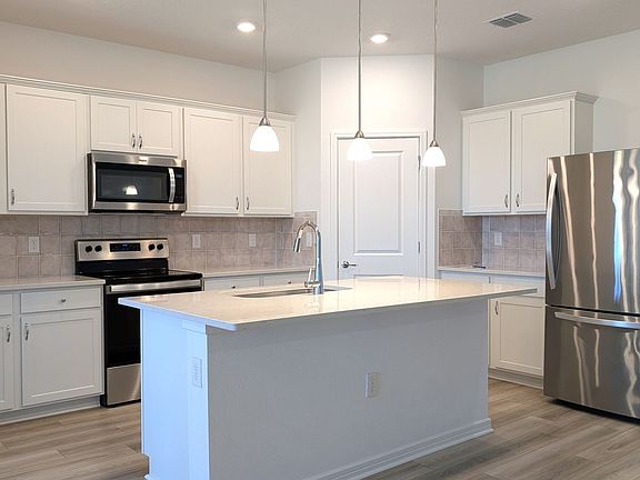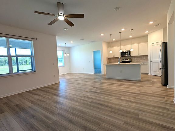3 Bedroom/ 2 Bath 2023 Cresswind model home is ready for immediate occupancy on a premium lot overlooking quiet green space views. Located in the gated, 55+ Stone Creek Golf Course Community packed with luxurious resort-style amenities, this exquisite home offers a perfect blend of modern elegance and natural beauty for a truly exceptional rental experience. Enjoy the large gathering room and open living spaces complete with recessed LED lighting, ceiling fans, and full window blinds throughout. Dining room glass sliders offer access to the screened-in lanai, offering peaceful nature views, seamlessly connecting the indoor and outdoor living spaces. Enjoy the gourmet kitchen with an island for casual dining and meal prep, stainless appliances, elegant Quartz countertops, recessed and pendant lighting, and a pantry providing ease of storage. The primary bedroom offers a spacious walk-in closet and an en suite bath featuring a Quartz topped double sink vanity, a step-down subway tile shower with glass door, and a separate water closet for added privacy. This home also offers versatile 2nd and 3rd bedrooms that provide extra space perfect for guests or an office or hobby room, a full laundry room, and a 2-car garage. Whether seeking a peaceful retreat or an active community, this exquisite residence in Stone Creek stands ready to welcome you to the resort lifestyle with premier amenities, including a golf course, resort-style pools, a health spa, and various trips and entertainment options.