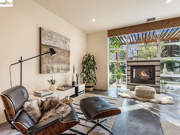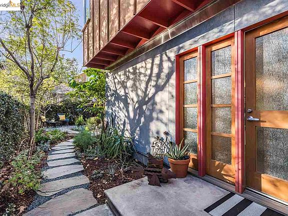 This modern & private residence, designed by famed Oakland architects: Wilson Associates, invites calm, creative living. Explore the open entry-level where the living room & kitchen's high-end materials echo nature: floor-to-ceiling windows, polished concrete floors, & wood paneling. The gourmet, eat-in kitchen's light wood & glass pane cabinets make for a stylish, airy aesthetic while stainless steel appliances & large pantries add convenience. Glass sliders open up to the landscaped backyard where a pergola shades the stone patio--the ideal spot for al fresco dining--& a flagstone path curves along the landscaped, yet low-maintenance garden. Upstairs, closets line the hallway & sunny bedrooms, each with their own ensuite, make for quiet, luxurious nights. To top it off, there is an office/zoom-room with built-in storage for inspiring workdays. Embrace the perfect location! You're just down the road from Ashby BART, shuttles, local cafes, the farmer's market, & Berkeley Bowl!