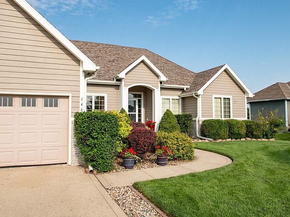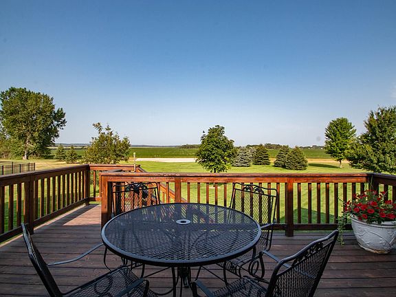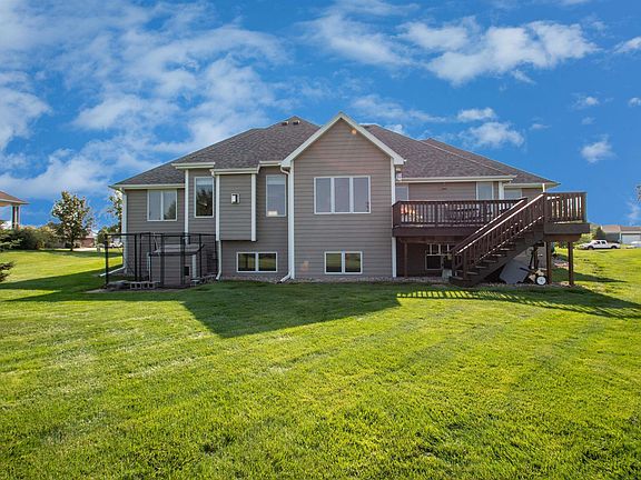 This 4 bedroom, 3 bathroom ranch home has a great floor plan and a welcoming decor throughout. If you enjoy sunsets, you should check this home out. Great views to the west from the back of the home as well as a flat back yard to entertain or to relax. The 3 car garage has a heater. Entering the front door there is a foyer with tile floor and crown molding. Host gatherings in the formal dining room with carpet and crown molding. The living room has great views of back yard and has carpet, crown molding and a gas fireplace with granite surround and oak mantle. Plenty of room to gather in the kitchen and dining area with wood floor. Sliding door to the deck from the dining area. Kitchen features oak cabinets, granite counters, island, slate stainless steel Samsung appliances(2020), and there is a 4 x 4 pantry nearby. The convenient laundry room has tile floor, sink, cabinets, and a coat closet. Split bedroom plan with this home. The master bedroom has carpet, pop up ceiling and a ceiling fan. 6 x 12 walk in closet. The master bathroom has tile floor, jetted tub, double vanity, shower, and a toilet room. The 2 other bedrooms each have carpet and double closets. A full bathroom with tile floor, tub/shower combo and a linen closet serves these bedrooms and guests. The finished lower level has a large area with tile floor and daylight windows. One part has a gas fireplace, another has the wet bar with cabinets, sink, tall counter and a frig and 2 beverage frigs, and the third part has built in speakers. Lots of ways to use this space. The 4th bedroom is down here and has carpet and a double closet. 3/4 bathroom has tile floor. An unfinished room (11x 11) could be an office or workout room. Lots of storage in this home. New shingles & gutters 2015. New furnace 2021. Marathon water heater. Radon system in place.