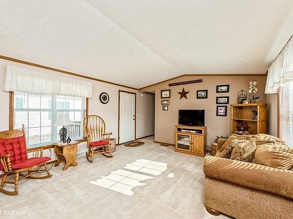 INDIAN TRAILS 55+ ADULT COMMUNITY * METICULOUSLY MAINTAINED NIAGRA MODEL 1080 SQ. FT. * 2 BEDROOM * 2 FULL BATH * 16 X 22 1.5 GARAGE * OPEN FLOOR PLAN * LARGE KITCHEN WITH OAK CABINETS * WOOD LAMINATE FLOORS * EAT IN AREA * GLASS BUFFET * SERVING COUNTER AREA * PANTRY W/ROLL OUT SHELVES * ALL APPLIANCES INCLUDED * VAULTED LIVING & DINING ROOM * PRIMARY BEDROOM WITH PRIVATE FULL BATH & CLOSETS * 2ND BEDROOM ON OPPOSITE SIDE OF HOME * LAUNDRY ROOM WITH CABINETS * LARGE DECK * BEAUTIFUL PERENNIALS * 2013 FURNACE & A/C * 2021 HOT WATER HEATER * Monthly fee includes lot rent, sewer water, garbage, and basic cable TV. No residents under 25, no pets over 40 pounds. Management approval is necessary background check $24.95 per occupant. No more than 2 people may live in the home smaller than 1400 sq.ft. RE taxes 2021 $272.02