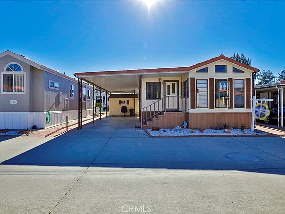 See it to Believe it!!! Super Duper Rare Opportunity. This lovely park model with room addition has been updated, backs up to one of the few greenbelts in the community and comes furnished with the exception of personal items. This IS NOT A FIXER, it was lived in for less than 6 months each year, well taken care of and MOVE-IN ready. The park model has central air and heat, laminate flooring, ceiling fans, granite kitchen counter top, electric stove and built in microwave. The exterior has a covered carport for 1-2 vehicles, a large shed with electricity and custom storage compartments that roll out from underneath the trailer and yes it backs up to a beautiful greenbelt. Property is located on a quiet, low traffic street in Heritage Ranch 55+ gated community where residents own their land (which means no space rent) and pay a low monthly HOA fee of $195 which includes water, trash, internet, basic cable and use of the resort like club house, swimming pool, indoor spa, gym, library, billiard and card room, banquet facilities, outdoor barbeque, state of the art shuffle board and a top notch laundry facility.