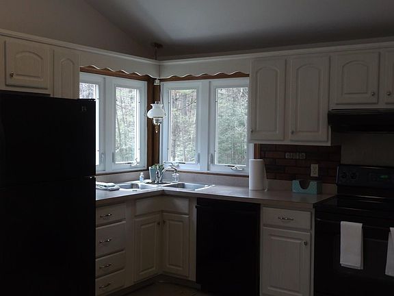 Open-concept country ranch-style home features beautiful, large, central floor-to-ceiling stone fireplace, hard wood floors throughout, with sliders to back yard area. Front of well-maintained house with central vaccuum faces large semicircular driveway connecting to double garage under house. Full partially finished basement features another fireplace and bar area, offering potential for upgraded living area. Newer windows installed (half in 2013/ half in 2010 - 2011) and furnace approximately 6 years old. New roof 2018, Solar Panels. Home surrounded by wooded area and sits on over an acre of gently sloping land. Sunny yard areas have potential for abundant flower and vegetable gardening.