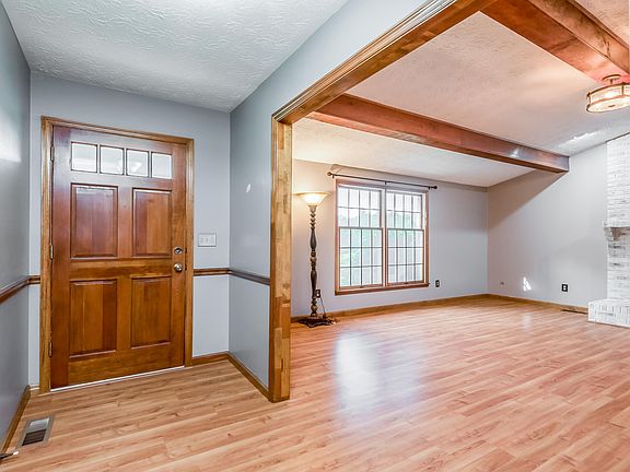This 4 bed /2 bath Brick Home is situated on 5 partially wooded acres with plenty of room to roam. Entering the home, you are welcomed by a gorgeous cathedral ceiling with wood beams, centered around a brick, wood burning fire place. The living spaces offer excellent views of your property. Good size bedrooms with large closets are available on the main level and a spiral staircase leads to great bonus space upstairs. Call today to set up your showing.