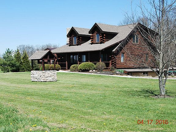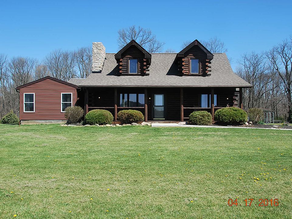 Watch the seasons unfold in this custom built 4 Bedroom 3 Full Bath Log Home. Features an open floor plan with a floor to ceiling rock fireplace, 2nd floor loft. Newly remodeled bath, new 20x25 addition makes great family room. New roof and new kitchen tile, new light fixtures. Above ground pool with large deck. All this on 7 acres close to Brookville Lake and an easy drive to Oxford, OH.