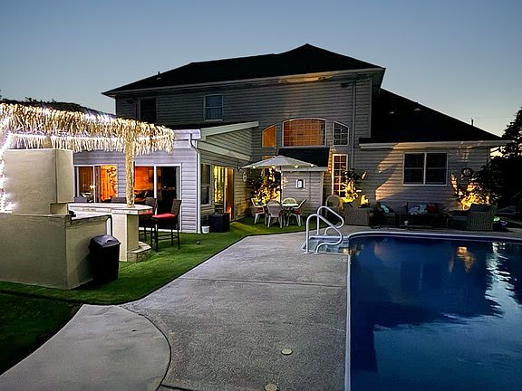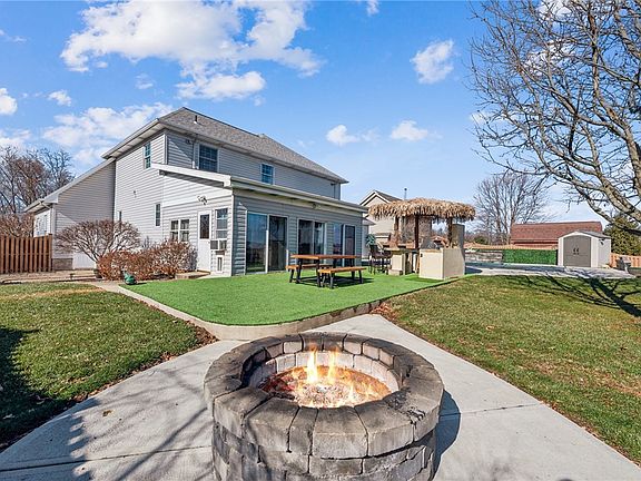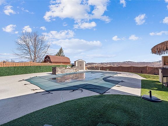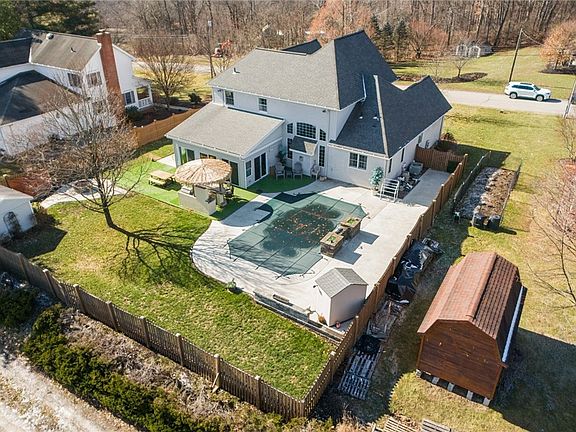 Experience luxury living in this exquisite 5-bedroom home designed for comfort and style. Step inside to find gleaming hardwood floors flowing past the home office, formal dining room,& into the expansive great room with soaring 18-foot ceilings. The main-level primary suite offers a spa-like retreat with double sinks, a soaking tub, an updated tile shower,& a spacious walk-in closet. The chef-inspired kitchen boasts stainless steel appliances, granite countertops,& abundant cabinetry,all conveniently located next to the 2-car garage & laundry room. Enjoy year-round relaxation in the four-season room, overlooking the resort-style backyard with amazing views, featuring a heated inground pool with a waterfall, tiki bar with fridge, fire pit, and two storage sheds. Upstairs, find four additional bedrooms, including the option for a second primary suite. The finished lower level impresses with a game room, home gym option, wet bar, half bath (easily convertible), & ample storage. No HOA!