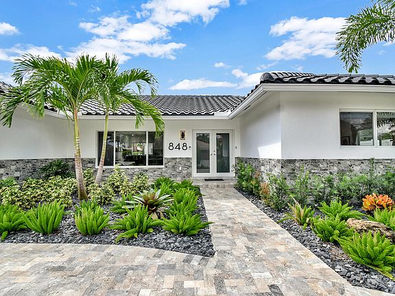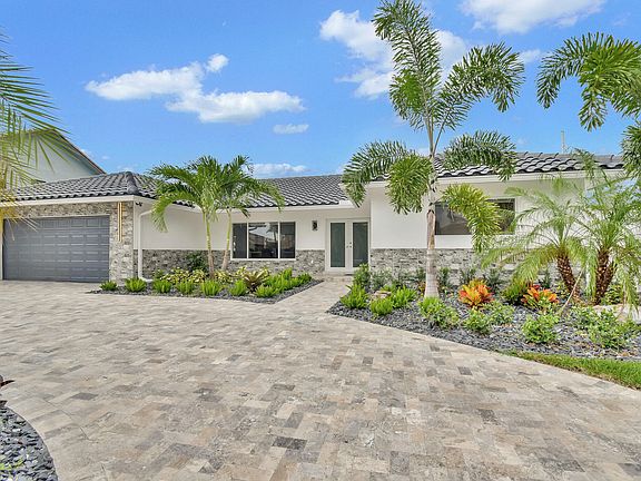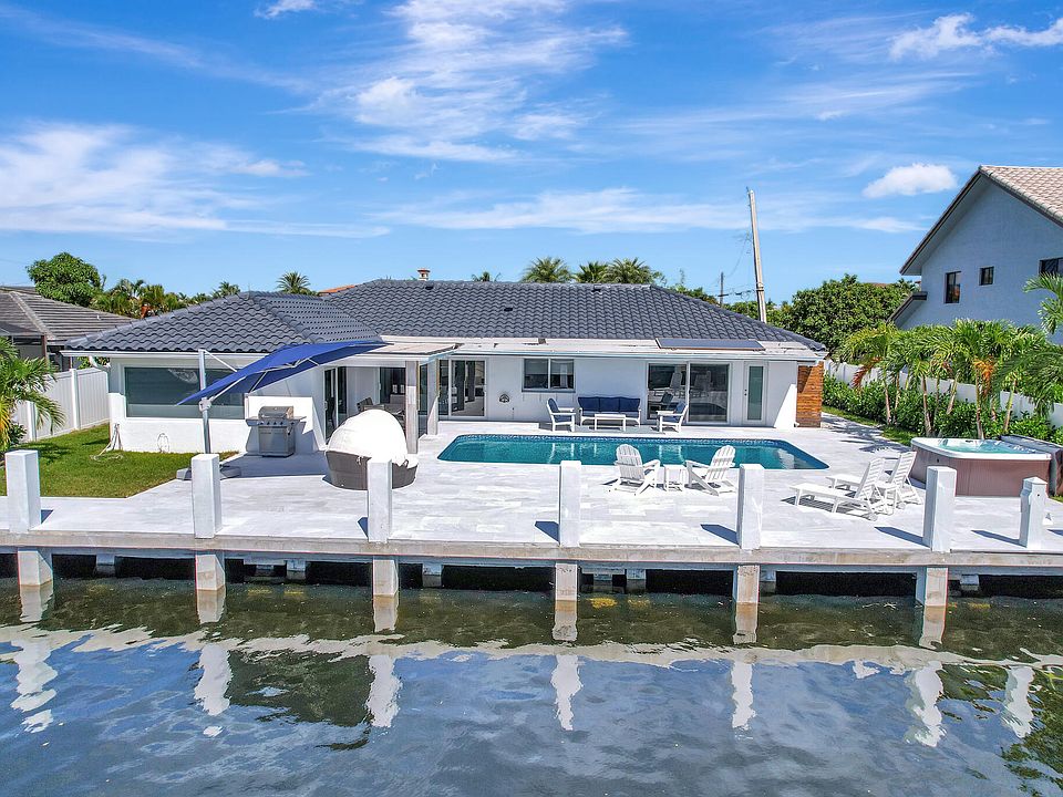 Welcome to your Boca Raton Waterfront Paradise! Completely remodeled and immaculately furnished by a designer, this 4 bedroom, 3 full bathroom masterpiece has a 2 car garage, heated pool & jacuzzi with a fully fenced in yard. This rare home boasts a DOUBLE MASTER and an open floor plan masterfully designed for entertainment. Bring your yachts and toys -- this home sits on a 90-foot-wide canal only steps away from direct intracoastal. Upgrades include wood-plank tile throughout, fully protected by hurricane impact glass, a chef's gourmet kitchen with premium appliances, white modern cabinets and natural stone quartzite countertops, The tropical oasis surrounding the pool and spa overlooks the canal with custom outdoor lighting, and a marble deck. Fully fenced, pet friendly!