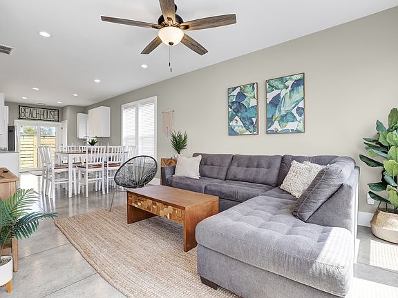 Relax and unwind at Palm Paradise, a Bohemian inspired beach house that was featured on HGTV House Hunters! This bright blue gem boasts 3 bedrooms and a massive rooftop deck. Located just one row back from the water, you can spend your days at the beach and your nights relaxing on the deck. Fully furnished! The first floor is where you will find the kitchen, dining area, living room, half bath, and master suite. Just outside the kitchen we have a gas grill and a fully enclosed outdoor shower. Upstairs are two more bedrooms (both with access to the roof deck), a full bathroom, and a large loft space. The massive deck steals the show of this immaculate house! Catch glimpses of the ocean as you dine outside at the table, read on a lounger, chat on a rocker, or relax on the couch. The sounds of the waves crashing will be the perfect background noise during your visit. Bedroom 1: King bed (sleeps 2) Bedroom 2: Queen bed (sleeps 2) Bedroom 3: Full over full bunk beds (sleeps 4) NOTABLE AMENTITIES: -24 hour keyless access with personal key code -Fast, reliable Wifi -NEMA 14-50 Electric vehicle charging outlet -50in Smart TV in living room -40in Smart TVs in master and upstairs queen bedroom -(2) Beach cruiser bikes -Separate Upstairs/downstairs thermostats -High end bedding and comfortable mattresses -Full kitchen with brand new appliances, silverware, dishes, glassware and utensils -Gas Grill (guests responsible for filling gas tank if empty as cleaners do not provide this service) -Outdoor shower -Fluffy bath towels -(4) Beach towels -Large beach cart - Full Sized Washer/Dryer in unit -Board/card games -Ceiling fans in bedrooms/living room -(4) beach chairs- please note, we replace these every season but they may rust during the busy summer months. Please bring your own beach gear if you may be bothered! Lease to be signed at time of rental.