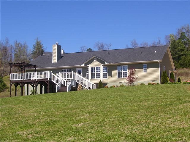 Tranquil country setting,with view, yet convenient to town. One level living. Split bedroom home, with maple flooring and tile. Large master bedroom and bath, his and hers closets. Built in bookshelves and entertainment around stacked stone fireplace. Office located off foyer 11'x13'. Large deck with pergola. Pasture views.