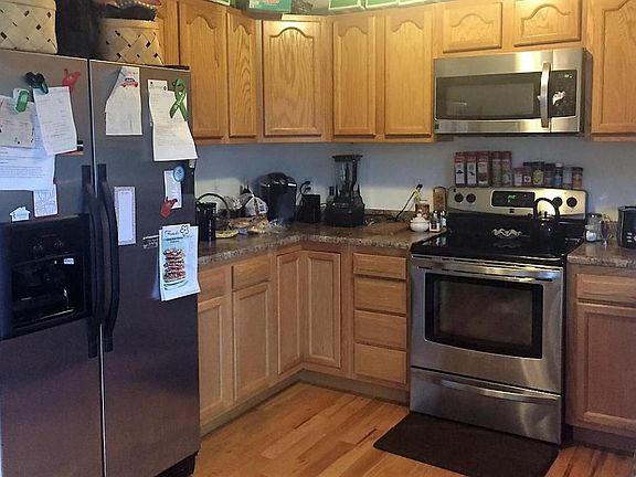 Bright, airy and looks great inside this 1 level home is situated on a spacious corner lot & boasts low maint. with vinyl siding, insulated windows and chain linked fencing in back yard. Interior offers gorgeous hardwood floors, tile, open living room, great kitchen with stainless steel appliances and doors leading out to back deck.3 bd/2 ba. Enjoy views from covered front porch!