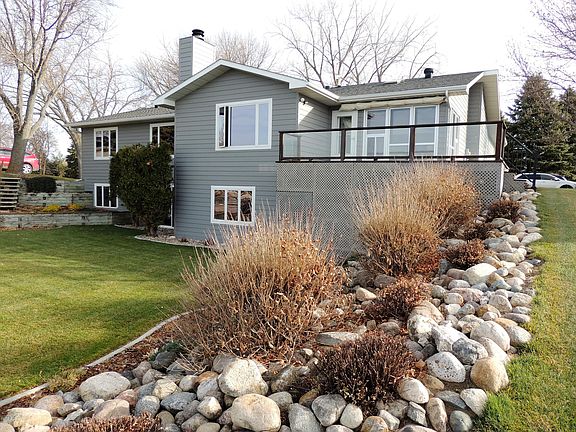 LAKE LIFE IS CALLING! Amazing sunsets & NO flood zone...Here is your chance. This beautiful one owner home is calling your name. Wonderful views from every room whether you're in the 4 season room, den, living room or family room. The master bedroom suite is stunning, with an updated bathroom with a gorgeous tub & Onyx walk in shower. Large kitchen with hardwood floors & a fireplace to create lasting memories with friends & family. The walk out lower level has 2 bedrooms, a full bath, family room, tons of storage or room to add additional bedrooms. The outdoor space is just as stunning with perennials among the landscape, deck with the most amazing lake views, a storage room on the lake side for easy access to toys, plus a sprinkler system to keep your lawn & garden green