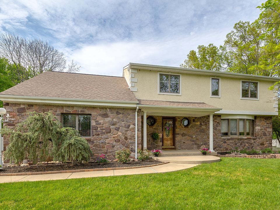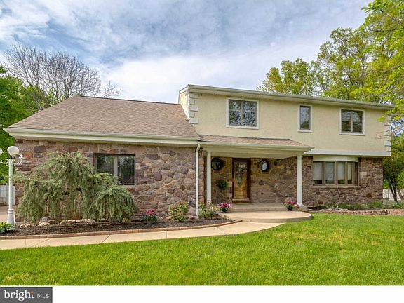 Welcome home to this beautiful stone front colonial. Attractive covered front porch leads to imported Italian ceramic marble foyer. Formal living room has crown molding and is bright and spacious. Dining room has plenty of space to host all of your holiday dinners. Eat in kitchen boasts of ample Thomasville cabinetry, imported Italian tile back splash, and both corian and granite counter tops. Dishwasher and oven have both been replaced within the past year. Open kitchen space leads into cozy family room featuring beautiful fireplace with mantle stretching the length of the wall. Sun room allows plenty of bright light and leads to spacious fenced rear yard that's perfect for outdoor entertaining. Upper level features large bedroom that can also be used as a play room, game room, or craft room. Master bedroom features gleaming hardwood floors, a sitting room, and ensuite bathroom with roman tub and seamless glass shower. Large unfinished basement with plenty of storage space and outside access. New HVAC system, new battery back up for sump pump, newer Bradford 75 gallon water heater with installed recovery tank. EP Henry driveway has just been resurfaced. Conviently located for commuters using Route 1, I95, and the PA Turnpike. Close to shopping and award winning Pennsbury Schools. Call to schedule your tour today.