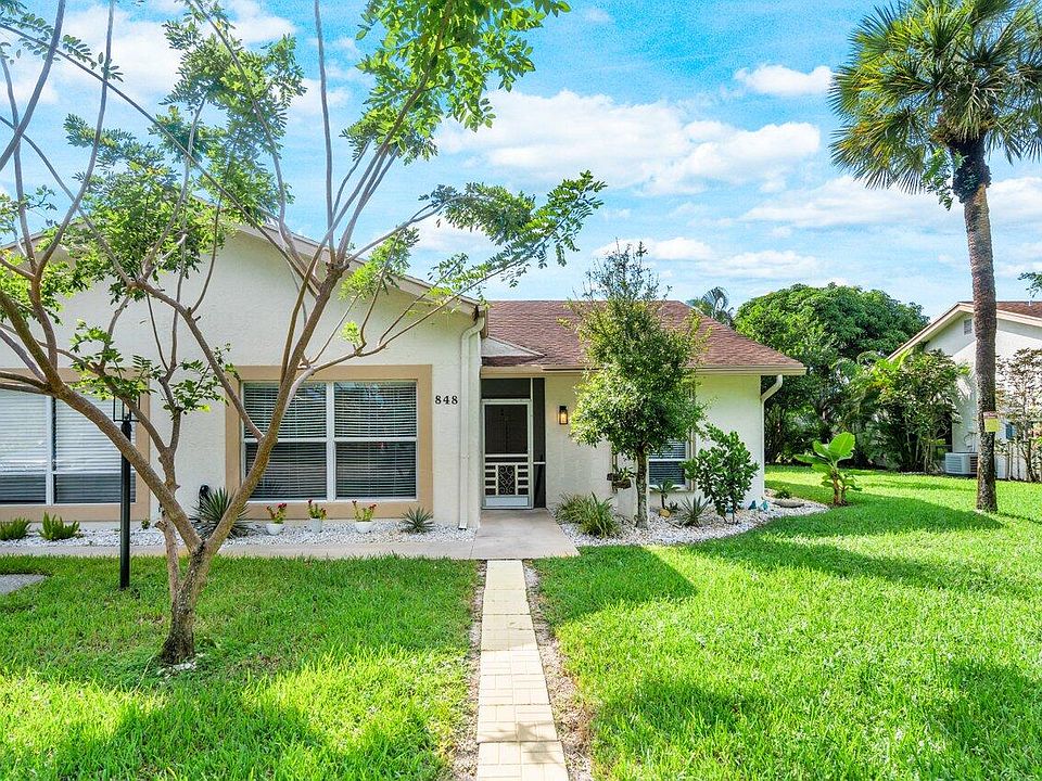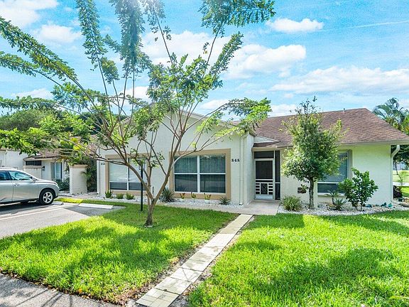 Impeccably remodeled & perfectly decorated Villa, 2 bedroom, 2 bath home in Lago Del Rey. This open & spacious villa has high ceilings and clean lines in contemporary white and gray. The calming water view and beautiful sunsets will end your day in peace and relaxation. Tiled and laminate flooring. New washer & dryer are located on the screened patio just off of the kitchen for convenience & quiet. This home has had every detail attended to for your comfort. Great location near a Public Golf Course, less than ten minutes to famous Downtown Delray & Atlantic Avenue with all of its restaurants, shopping and close proximity to the beach. At Lago Del Rey you can enjoy the tennis courts, pool, gym and clubhouse. It's pet friendly, all ages and able to rent right away. It's good to be home!