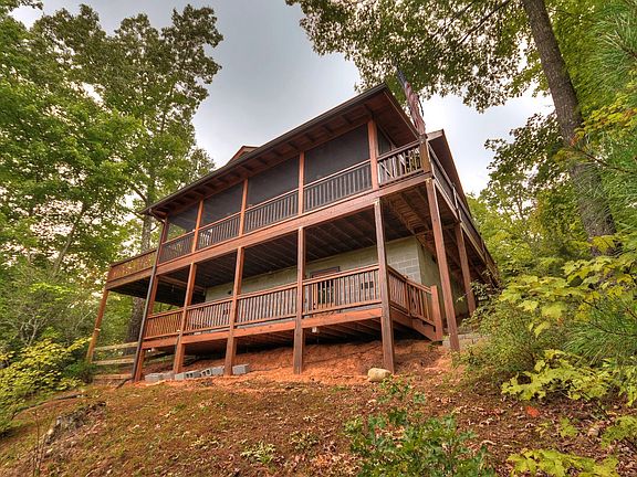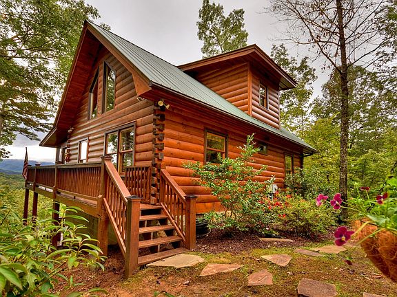 Beautiful true log cabin with Amazing mtn views , take in the sunrise from your screened in porch or the open deck in the hot tub. Beautifully maintained cabin with 2 bedrooms on the main, great room with 21' vaulted ceilings, eat in kitchen and abundance of counter and cabinet space,Large Loft bedroom, ( king size bed) sit-in area, and full bath, Beautifully decorated and furnished. Lower level deck with storage and some wood flooring and lighting in crawl for a work shop and or storage. Professional landscaped, striking rock driveway and small storage building . Minutes to Blue Ridge, yet feels like a million miles from the hectic pace of Life.