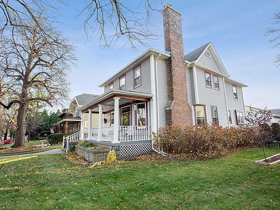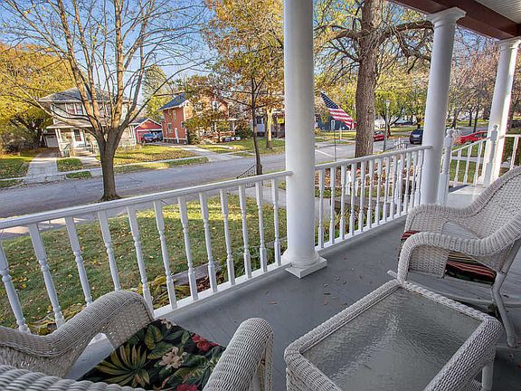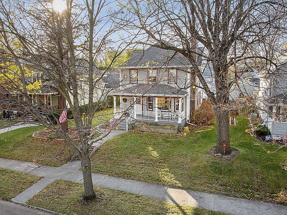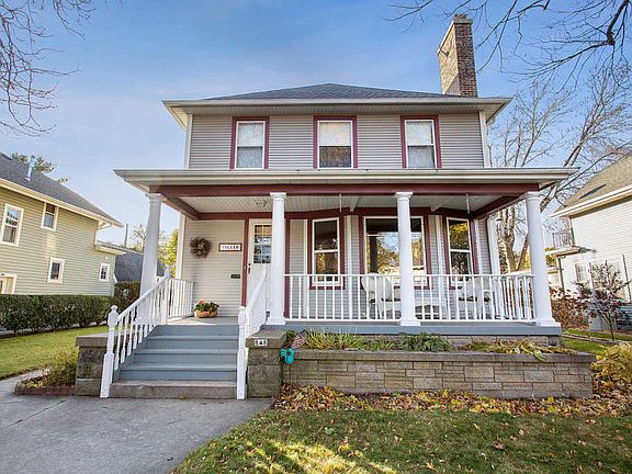 Located on a beautiful tree lined street with stone curbing, this stately home is full of character and updates. This 4 Bedroom 2.5 bath home features; natural woodwork with 9 ft ceilings and character, beautiful front staircase/foyer, updated kitchen with island prep sink and granite countertop, large master bedroom with remodeled master bath & tiled walk in shower. The front parlor has a woodburning fireplace that overlooks the large covered front porch. 1st floor office or 5th bedroom. Property has dual staircase. Basement has a large workshop and rec room. Alley entrance with newer 2.5 car garage with plenty of storage. The backyard has a patio w/ pergola and flower gardens. Maintenance free exterior!