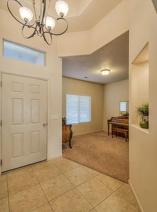 Lovely contemporary residence on the Sky Mountain Golf Course where the fresh air and views makes each day refreshing. This home features an open living room with gas fireplace, beautiful kitchen with desk/workstation and dining area, and a spacious laundry room with sink. Colorful surrounding view compliment a low maintenance landscaping backyard with fire pit/lounge area. Call today for showing.