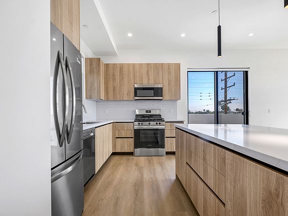 Stunning New Construction Penthouse with Panoramic Views! Be the first to live in this brand-new, ground-up construction a true showstopper located near The Grove, offering breathtaking views of downtown LA and the Design District. This two-bedroom, two-bath penthouse boasts soaring high ceilings, modern finishes, and a spacious open floor plan flooded with natural light. Step into a designer chef's kitchen featuring custom quartz countertops, a large island with bar seating, stylish backsplash, and brand-new stainless steel Frigidaire appliances including a refrigerator, stove, dishwasher, and built-in microwave. Both primary suites are generously sized with walk-in closets and spa-inspired en-suite bathrooms adorned with custom tile work and elegant vanities. Enjoy breathtaking views from every room and your own private huge roof top patio, perfect for entertaining or unwinding while taking in the cityscape. Additional features include: In-unit washer and dryer, Central A/C/heat, Two parking spaces, with elevator and stair access.