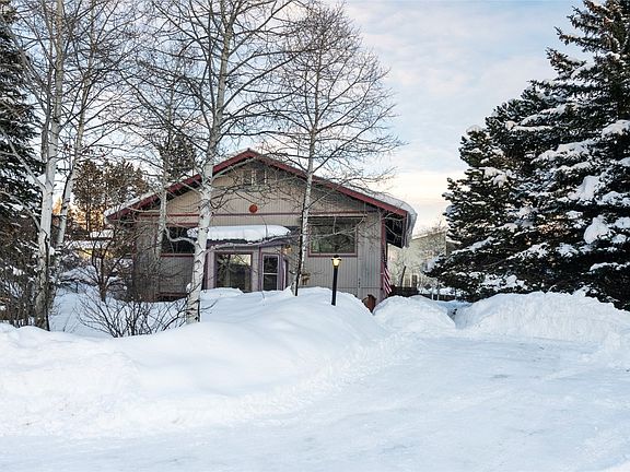 New Opportunity in Downtown Steamboat Springs! This charming single-family home nestled on a quiet cul-de-sac in a well-established neighborhood boasts 4 bedrooms, 2 full bathrooms, and a generous 0.28-acre oversized lot. The elevated site provides sunset views from the generous front yard. This property is zoned to offer incredible potential for customization including the addition of a garage with a caretaker unit. Upon arriving you’re welcomed with a spacious driveway accommodating multiple vehicles ensuring parking is never a concern and an entry room for boots and coats. The main level unfolds into an inviting open floor plan that includes living room, dining area, and kitchen with plenty of natural light from the many windows. Two bedrooms and a full bathroom complete the main floor. Relax on the back deck; ideal for soaking in the serene ambiance and enjoying your morning coffee with the sunrise. The backyard is adorned with a picturesque aspen grove and a large fenced yard enhancing the tranquil charm of the home. The two sheds are included and provide ample space for all your outdoor gear and sporting equipment. The lower level is equally impressive, featuring custom woodwork and a custom-made wet bar with a fridge creating the ultimate retreat. Two additional bedrooms, a full bathroom, and a laundry area are also found on the lower level. Recent upgrades include new windows throughout the home, new carpet, LG washer/dryer, new thermostats, and the ample deck off the main floor. Offered with furniture negotiable this home invites you to bring your personal touch to make it your own. Whether you're seeking a primary residence, vacation home, or investment property, this rare find offers a blend of downtown convenience and quiet charm on an over-sized lot with unmatched potential. With no HOA dues, room to expand, and desired location, this property won’t last long. Seize the chance to make this attractive Steamboat home with endless possibilities your own.