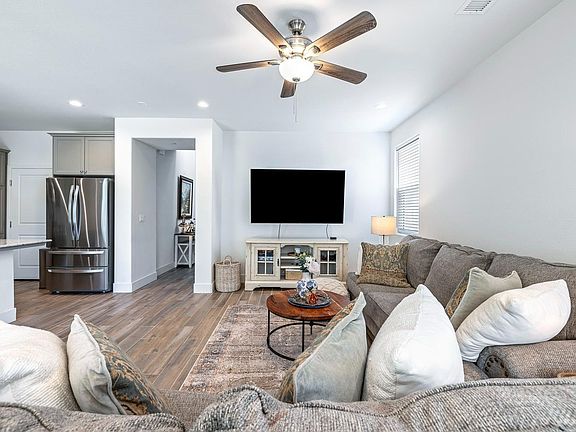 Enjoy resort-style living in this stunning McCaffrey home in the award-winning master-planned community of Tesoro Viejo. This 3 bedroom, 2.5 bath home includes a den off the kitchen, perfect for a home office, playroom, or personal hobby space. Pride of ownership is on full display. The open floor plan is perfect for hosting gatherings and entertaining. This home features gorgeous granite countertops, can lighting, big pantry along with lots of upgrades including tile flooring, carpet, farmhouse sink, bigger baseboards, additional outlets and appliances and fans in the bedrooms and living room. Step outside to the backyard patio where you can BBQ, relax with a great book and enjoying the low-maintenance yard. This property is also just a short walk from the Orchard Pass Trail. PPA solar to help with those high utility bills. As a resident of Tesoro Viejo, you'll have access to amazing amenities, including pools, multiple spas, cabanas, a clubhouse, a play pool, ping pong, multiple TVs for watching big games, parks, trails and BBQ pavilions. This home is located within walking distance of the elementary school and short drive to Fresno. Don't miss out on the chance to own this immaculately maintained home. Call and schedule your appointment today.