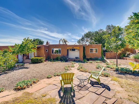 A Main House with an attached Guest House in Casa Solana! On a large corner lot with views of the Sangres, this 1860 sq. ft. 3 bed/2 bath main house (with a large basement) and 466 sq. ft. 1 bed/1bath guest house are a rare find. The Stamm wood flooring still remains, but the main house has been updated with a large kitchen and master suite with an adjoining office/flex room. The attached guest house has been a wonderful income producer as a short term rental. The carport is enclosed with an oversized, 1 - car garage door (2 car tandem parking is possible). There is so much value in this Casa Solana property: Downtown location AND income-producing!