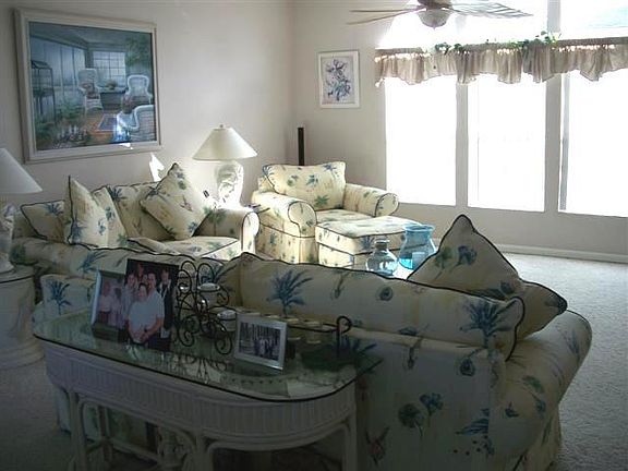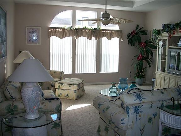 2005 Homes Of Merit. 3br/2ba, furnished split plan home.1600 sf plus a large screened Florida room. The living rm has a tray ceiling, eyebrow windows and decorative palm fan. There is a galley style EIK with tile floors, recess lighting, tile trimmed counters and a walk in pantry. The kitchen is galley style. The master bedroom has a walk in closet 2 guest bedrooms have large closets.. The master bathroom is a glamour bath, double vanity, walk in shower w/ etched glass door, garden tub, tile floors, linen storage space. The GBA also has a walk in shower with an etched glass door and tile flooring. home has lots of extras like tape and textured walls, berber and tile floors, custom window treatments If you have a man that likes to tinker there is a huge shed/man cave complete with extras like pegboard so he can easily find tools. There is a side by side and deco painted double carport so you can easily park four vehicles. The home overlooks a tropically landscaped lot with a fountain. From the minute you enter the home you will be in awe with all of the little extras and the spaciousness of every room. So come take a look at this haven in the sun! Lot rent is $541. If you are destined for great retirement living than this prestigious Community is where you need to be. This is a 55+ Community where the minimum age for residency is 45 years old. There are activities for every lifestyle in this Community! The amenities are unsurpassed and include a country club style clubhouse, heated pool, spa, shuffleboard, tennis, horseshoes, exercise room, billiards, library, bingo, and a ballroom. It also has secured RV & boat storage. This is a pet friendly Community so your pets can enjoy the pampered lifestyle too! If location is important to you than this community will not disappoint you there either since it is located just 10 minutes from Disney and all of the Orlando attractions. You are also encompassed by a wide variety of shopping, restaurants, churches, medical facilities, numerous golf courses and Polk Countys 550 lakes. Within an hour is a major airport and Floridas famous white sand beaches. You are also within 30 minutes of Historic Bok Tower and Legoland. Sports fans you will love calling this Community home because you are minutes away from the Spring Training home of the Atlanta Braves. This Community takes great pride in its well maintained lots. You are surrounded by a warm tropical breeze blowing through the palm trees from the minute you enter the community. It represents everything the Florida lifestyle is all about. Spend the day at the pool soaking in the sun and the evening at Disney watching the fireworks. Davenport is located in the heart of Central Florida and has a population of around 5,000. It also has some of the most affordable living in the Orlando/Kissimmee area. Potential residents must meet the age requirements of the community for residency. This community requires that at least one homeowner be 55 years of age or older. Other residents must be a minimum of 45 years of age. All potential residents must be approved for residency prior to purchasing a home. The Thompson Team will be happy to assist you with the approval process. When looking for your new dream home, remember the advantages of a resale home such as this in a leased land community. You benefit greatly by purchasing in a leased land community as you do not have to pay property taxes! Included with all homes that we sell at full asking price is a 1 year home warranty wh