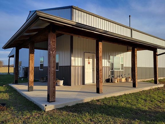 This is an ALL STEEL BUILDING with a wood structure (unfinished) inside on the North end for living space. Selling in 'AS IS' condition. Sellers are not finishing the structure, but you will have a good start on your own home. One area is finished for temporary living while finishing. Tons of square footage(total 84x100) and so many possibilities!! 2 garage doors were built for Semi-trucks. No problem fitting whatever you need in this amazing shop. Total of 5 garage doors. 2 measuring 14 ft tall and 2 measuring 10 feet tall. Heated concrete floor throughout the entire structure. 5th garage door is glass and off the kitchen area to allow for outdoor living space. Shop contains 110 and 220 electric. Septic tank and rural water are in place and operational. Entire structure has spray foam insulation. Storm shelter is 8' concrete. Unfinished portion of living space contains all framing and is stubbed for plumbing. Beatiful setting with so many possibilities.