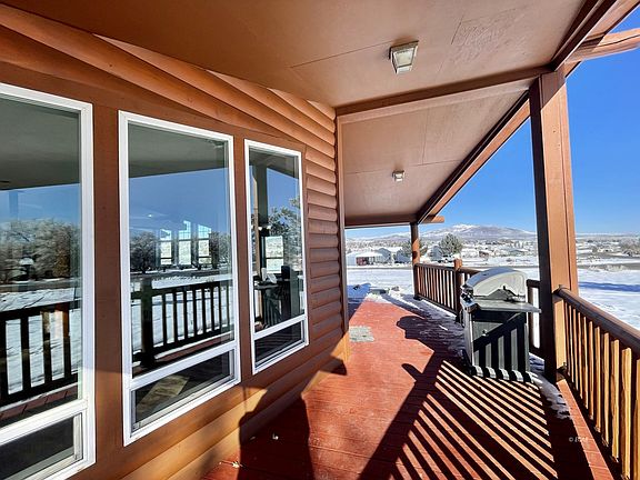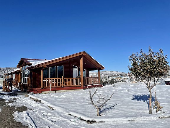 Beautiful open living concept floorplan log home on a corner lot with stunning views. There are vaulted ceilings and lots of windows that provide great natural light. Tons of room to entertain with the oversized living room and large kitchen. Cozy up to the newer pellet stove in these cold winter days and nights. The kitchen has many cabinets, countertops, and a large island. All of the bedrooms are big, too! Enjoy the main bathroom's garden tub or the brand new oversized shower. New flooring throughout. Metal roof. Central air. Large detached garage. Soak up the view of the Ruby Mtns while sitting under the covered front porch. Don't let this one pass you by!
