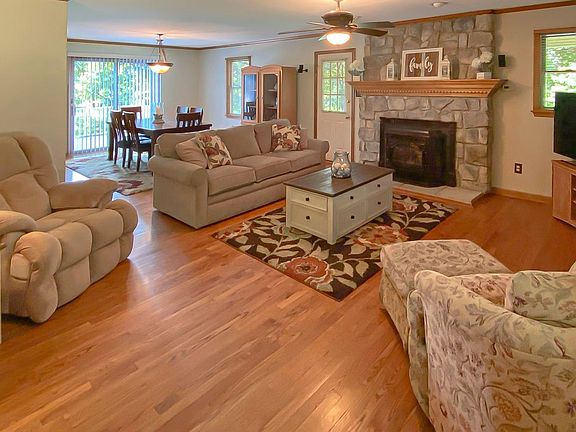 WELCOME HOME! THIS BEAUTIFUL AND WELL MAINTAINED SINGLE FAMILY HOME HAS LOTS TO OFFER. FRESHLY PAINTED. UPDATED KITCHEN W/GRANITE COUNTER TOPS, LARGE PANTRY, GAS STOVE (PROPANE). SUNROOM OFF THE KITCHEN. TREX DECK. HARDWOOD FLOORS THROUGHOUT. PELLET STOVE IN LIVING ROOM. 3 CAR GARAGE. PRIMARY BEDROOM W/HUGE WALK IN CLOSET, PRIMARY BATH. LAUNDRY ON UPPER LEVEL. ATTIC FOR ADDITIONAL STORAGE SPACE. FULLY FINISHED BASEMENT WITH HUGE FAMILY ROOM. PATIO. TONS OF STORAGE SPACE. WRAP AROUND PORCH. MAIN LEVEL OFFICE AND BEDROOM.