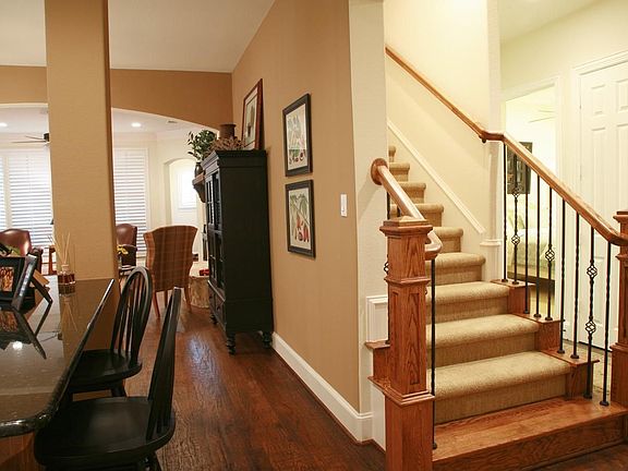 Gorgeous and meticulously cared for! Handscraped wood flooring, upgraded carpets, Plantation Shutters thruout, granite,Whirlpool Gold appliances, convection oven, 5 burner gas oven, frameless glass enclosures on all showers, wrought iron staircase. Upstairs game with private BR and BA. Private Master and 2 addtl bedrooms w full BA on main level. Custom designed patio with blt-in grill,fridge,gas fplace, outdoor fan, lighting and sound system.