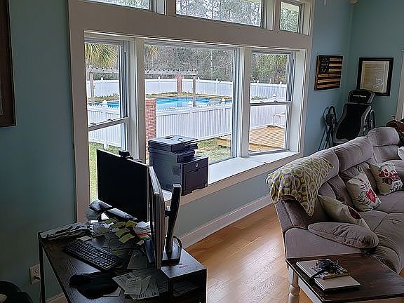 Living the easy life! A great piece of property. Near 5 acres, high and dry, mostly cleared with mature trees. Horses Welcome! Entire home has been fully renovated with "Dream kitchen" plus "Family Room" addition is spectacular. 9 foot ceilings, beautiful mantel w/ gas log fireplace, & charming bay window seat. The family will love this room! Tons of windows and natural light, French doors lead to a huge multi level deck at ~ POOL ~ side. 3 bedrooms plus study, formal dining room, a large den and Great Room. HARDWOOD floors throughout. Kitchen is LOADED. Commercial gas stove with 6 burners and 2 ovens. All stainless appliances and custom cabinetry. Kitchen island w/ breakfast bar. And a huge built in pantry. Spacious porches front and back. Two-Car car port with storage (28' * 30'), plus 2 detached workshops (30' * 39') & (16' & 13') This home is a must see!