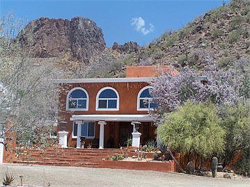 A Very Unique Block Constructed Home positioned on an **Elevated 2 1/2 Acres** of Land Bordering Tonto National Forest. There is a Private Hill with its own Nature Trail. There are Incredible Mountain Views in All Directions and City Light Views from the front. The home has Two Master Bedrooms. A 360 SQ FT. Bonus Room (NOT INCLUDED IN SQ.FOOTAGE) with A Shower and Sink that can easily be converted to a 'Guest Suite or Third Bedroom'. The upstairs Master Suite features a Sitting Area, and a Huge Walk in Closet, which can easily be divided into a possible Forth Bedroom. There is a Large Walk Out Deck to enjoy the Mountain Views with Stone Rails extending around from the side to the back. There is an External Staircase for additional access to the Master