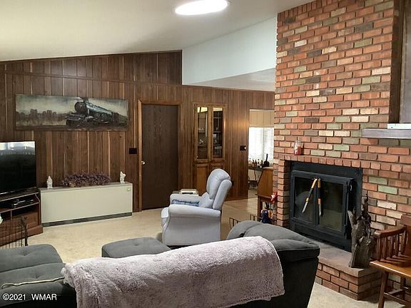 Very nice cabin located at the back of the Pinetop CC within walking distance of the national forest! Situated on a beautiful corner lot covered with tall pines this single-level home has a floor-to-ceiling red bricked wood burning fireplace, one-car garage with additional storage areas and a sunroom with closet that could double as a third bedroom. Charming built-ins provide plenty of interior storage or display. Great covered back deck to enjoy the outdoors. Lovingly cared for the sellers have retiled kitchen and dining room floors plus both baths, replaced kitchen countertops, both bath toilets and wood decking on front porch; also added a rear brick patio along with an enclosed dog run area. Won't last long - Ask to see it today!