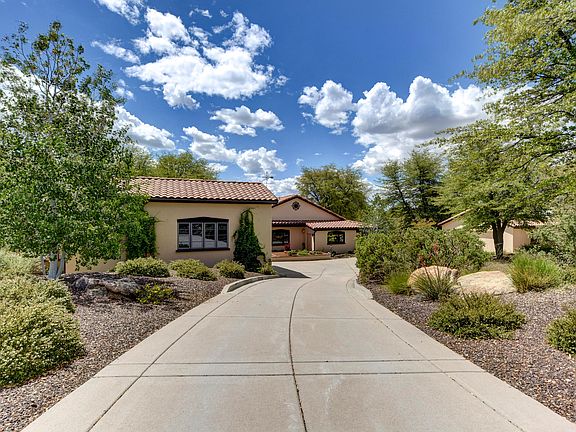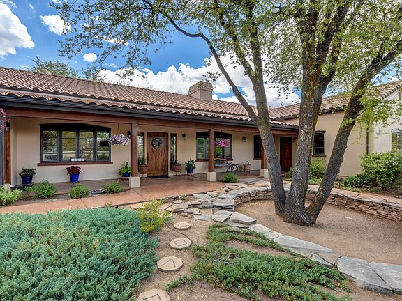 Connect with Arizona's Spanish heritage in this unique custom Granite Oaks Spanish Colonial Revival home. Enter the home through an enclosed walled courtyard with a beautiful fountain where you can enjoy the grounds that were professionally designed to take full advantage of the native oaks and views of Granite Mountain. There is even an enclosed, heated and vented Greenhouse for the avid gardener. Inside, you will find many built-ins masterfully crafted to stay in the Spanish design. A 7 zone radiant floor heating will make sure you stay warm all winter! The woodburning fireplace, with its custom made mantel is the perfect spot to gather around in this large living room/dining room area. French doors will provide guests access to the back patios creating an indoor/outdoor entertaining are