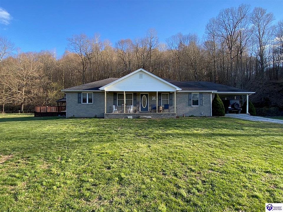 PENDING, SELLER IS ACCEPTING BACK-UPS. Home to this beauty featuring an open concept Living/Kitchen & Dining, 3 Bedrooms, 2 Baths, a full Basement, spacious Laundry Room right as you enter the side entrance, a Detached Garage that measures 20 x 24. This property has an above ground Pool with a deck and gazebo. There is a serene creek located in the back of the home for all of your stressful days. You can sit on the covered back porch and listen to the water while sipping on your favorite beverage. If the back porch gets tiring, try sitting on the covered front porch that overlooks the 15 +/- acres that you can enjoy daily. There is a shed that's located to the left of the home that is used for animals and hay storage. Data believed correct; however, not guaranteed. Buyer to verify data prior to offer.