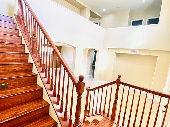 Excellent neighborhood, close to school and shopping mall and spacious and more Charming and Elegant house with a lot of natural light 4 bedrooms and 3 full baths (of which, 1 large bedroom and one full bath on the ground floor) Stunning master room plus a loft Formal dinning room Spacious living room and family room Stone and hardwood floors, no carpet 3 garages and huge front yard parking spaces and 2 RV access Upgraded interior and modern new paints Amazing courtyard with build in pond and built barbecue to enjoy with family and friends Renter responsible for water (including water for watering the plants in the front and back yards), gas and electric. No smoking allowed.
