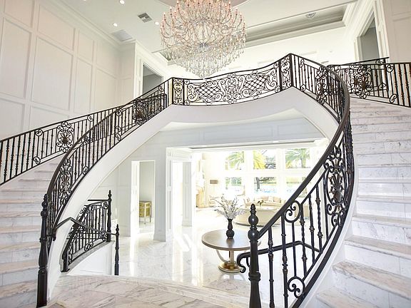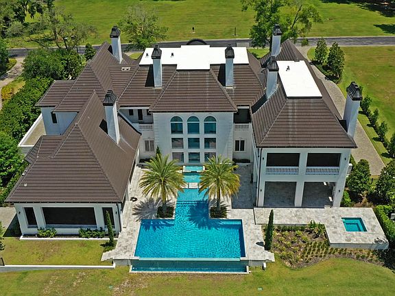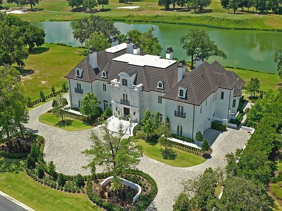 Step into the expansive foyer of this elegant new French chateau-inspired home & sumptuous luxury greets you at every turn. The attention to detail & craftsmanship is unsurpassed. From the custom designed Jack Kluhm dual circular staircase to the imported Italian marble that graces nearly every room. Warm sunlight floods through the numerous windows showcasing picturesque views rich with wildlife on the water. Enjoy the soft glow from your choice of 8 fireplaces while sipping on a bottle from your wine cellar that doubles as a safe room. The Kitchen is both opulent & comfortable. Take the elevator to the third floor Theater Room for the complete movie viewing experience. The Master Suite closet must be seen to be believed! Auto-screened private balconies overlook the sparkling pool & lake.