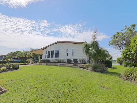 LOCATION IS EVERYTHING! This beautiful home sits right on the 65 acre lake in the very sought after Imperial Lakes community, which is situated right near the I75 and 275 junction! (Deed restricted and resident owned) This home has been well loved and maintained. It has an appealing layout, nice for entertaining. It is very light and bright throughout, with cathedral ceilings, which make it feel even bigger. There are several options for dining...an eat-in kitchen bar, a formal dining area, the screened lanai or the outside covered patio. The den would make a nice office space. The master bedroom and bathroom are huge! Both bathrooms have been completely remodeled (1 tub, 1 walk-in shower) Abundant storage space and the w/d are inside! There is a shed with workbench at the back of the 2 space carport. You have your own dock on the lake! The furniture is optional. Windows in 2014, Paint, Appliances and front entrance all done in 2015, A/C in 2017, the bathrooms in 2018, Roof is approx. 15 years old. Imperial Lakes' amenities offer resort style living in a pet friendly, 55+ social environment. This beautiful lake home has been a true blessing to it's owner for many years and it's time for that blessing to become...yours, perhaps?