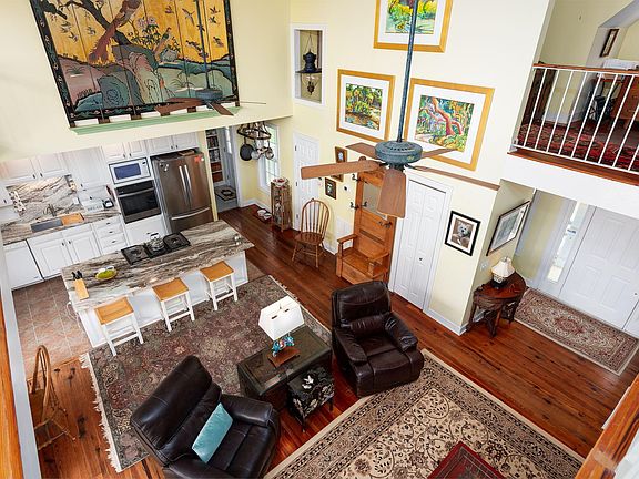 NEW PRICE!! MOTIVATED SELLERS!! PHENOMENAL HOME ON THE CREEK with a high bluff, mesmerizing tidal views of ST. Pierre Creek, featuring 3 BD & 2.5 B. Enter into smooth vaulted ceiling, pine floors, gas fireplace & new windows across the back to welcome sunshine inside while looking at dreamy marsh & creek views. Newly updated kitchen with quartz countertops, custom cabinets, new appliances, an amazing pantry, 2 Bd on the main floor with jack and jill bath. Spacious Master on 2nd floor, walk-in closet, double vanities & separate shower & jacuzzi along with your own balcony! The spacious open balcony upstairs can be used as desired. Whether relaxing in the screened porch or the deck w/new retractable awning, you're only a few steps to the dock. Separate 800 sqft Workshop & Pond on the propert