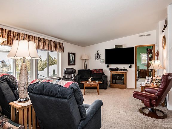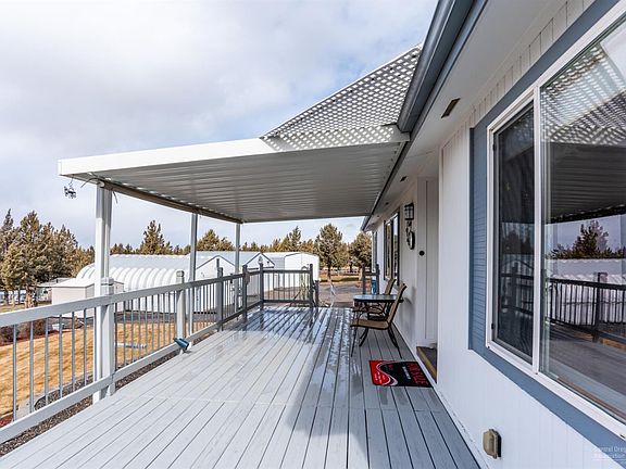 Meticulously maintained 3 bedroom 2 bath, 1365 sq ft manufactured home on a private Crooked River Ranch Cul-de-sac. Enjoy the light and bright open layout with air conditioning for year round comfort. This home features a centrally located kitchen with full sized pantry, updated island, stainless steel appliances and propane stove. Wake up to mountain views from the master suite that also includes a walk-in closet & dual vanity sinks. The remote powered electric gate gives convenient access to your fully fenced pet safe property. Enjoy afternoon sun and great views of the Cascades on the covered deck off of the front of the home. Multiple functional outbuildings include a shop, detached two car garage, storage shed and Class A RV storage with power. This property is a must see for those looking in Crooked River Ranch.