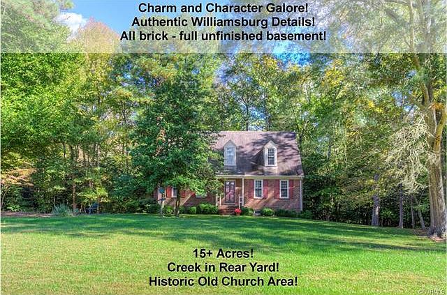 This stately and handsome Williamsburg-style cape exudes charm and character. Nestled deeply on a 15.7 acre lot in the historic Old Church area yet doesn't feel isolated at all. This well loved and well maintained home is still occupied by the original owners and awaits the next lucky family. Beautiful hardwood floors. Lots of trim and details. Many of the light fixtures were custom made to maintain the feel of an authentic Williamsburg style home. Lovely formal rooms! 1st floor office. 3 bedrooms on 2nd floor. Full unfinished basement. Wonderful screened porch! A great price for the location! A must to see.