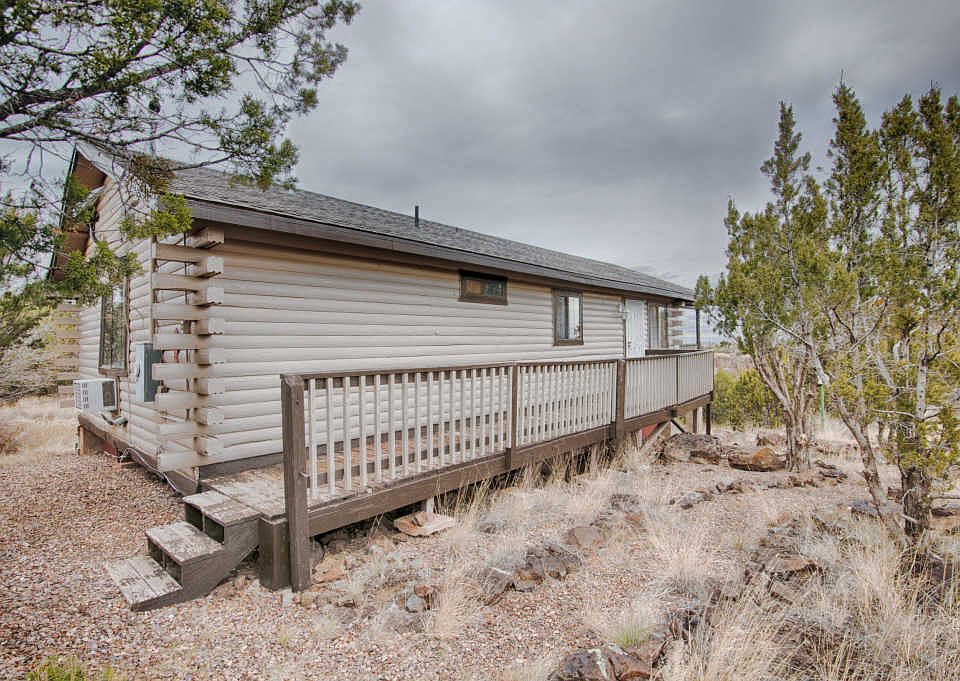 Property is around 76'' from touching the creek. Views off back covered deck of canyon walls. Inside of home is mountain cabin style, you have to see it to appreciate. There is a 20 x 28 workshop or office that sits in front of the home. Overlooks the Silver Creek Canyon. Seasonally the creek runs thru the property. Connects to the White Mountain Lake. Located on a quiet cul de sac, private. Cabin needs some updates and has abundant potential. Lots of large open windows allowing for fantastic views and plenty of flowing natural light. Open kitchen, dining, living areas. Detached building could be guest house, greenhouse, hobby room, etc. Nested in the canyon walls this property is unique and perfect for outdoor enthusiasts.