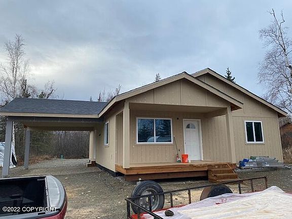 New 3 bedroom 2 bathroom ranch home in Wasilla area, located only a few miles from schools. The home has 1280sq feet of living space with 320sq feet of carport/future garage. It is built with high quality and precision. You can still choose your outside house color! Their will be new stainless steel appliances(dishwasher and stove range) The home has gorgeous smartcore premium waterproof LVPflooring and will have soft carpet in the bedrooms. The window sills are plastic PVC composite, so they will last forever and will not rot or swell!There are nice mirrored closet doors throughout the home, so you can see yourself. The master bedroom is set up with extra wide doors if wheelchair access is needed! Also the master bedroom has a decently sized walk in closet. This home has a open floor plan with vaulted ceilings, it's a must see! The home has a 2 vehicle carport designed to easily to be upgraded into a garage. The estimate to enclose the carport is 15k, ask for more info, if interested. The lot is nicely flat, with a large front and back yard ready for your family. The home has lots of privacy and is surrounded by trees! You still have about 90' by 140' of raw untouched treed land behind the backyard! The road is well maintained in the summer and winter. There is plenty of parking even for you RV's and toys! This house is very efficient on energy(has been well insulated) and has LED lights throughout the home! You can still choose your outside house color! Construction to be completed in about 30 days.