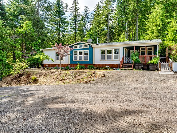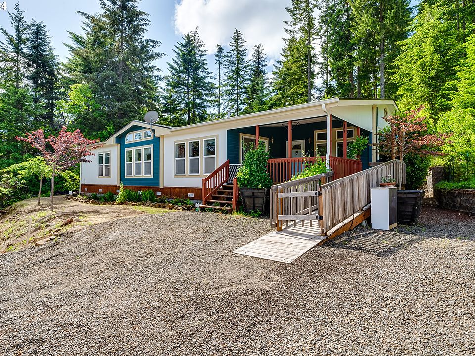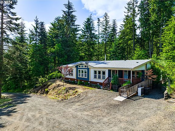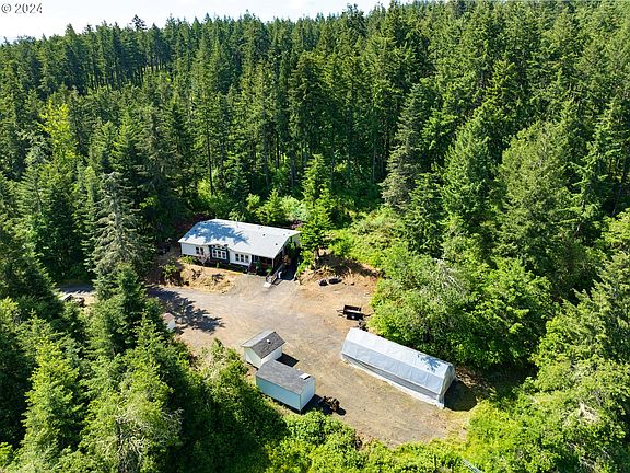 10.19 acres 5 minutes from town-your own private forest! This beautiful property has over ten acres of mature forest, a creek and pond and trails waiting for your recreation. Peace and privacy await at the end of a quarter-mile long private drive. There is plenty of space in the 1993 triple wide manufactured home, boasting 3 bedrooms and 2 and a half baths with a large open concept main living area and another living area currently being used as a separate living space. Many great updates have been done such as newer roof, Hardiplank siding, newer wood stove and HVAC. All that is needed is your cosmetic touch! A large greenhouse is ready to accommodate all your planting needs. Two outbuildings for tool and equipment storage are conveniently located close to the greenhouse and home. 4j schools.