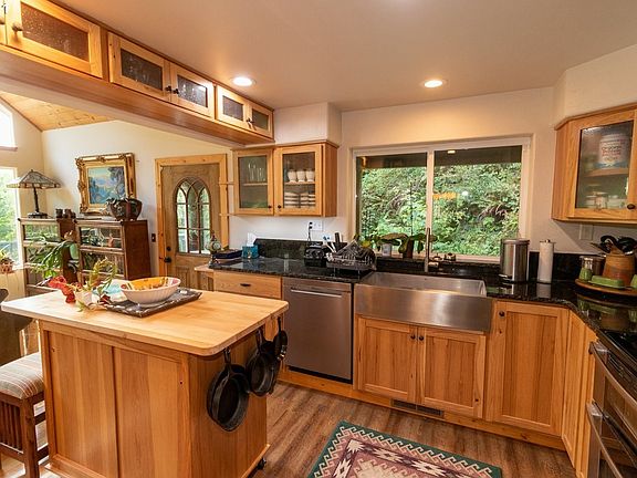 Custom 2691 sq ft chalet home in idyllic setting on 2.81 acres in natural, secluded setting just South of Florence. South facing, vaulted ceilings, hardwood floors, remodeled kitchen with granite counters, farm sink, island and stainless steel appliances. 664 sq ft master suite, wrap around deck, RV parking, and lower level could be in-law or rental income.