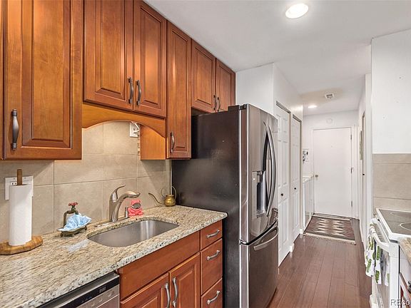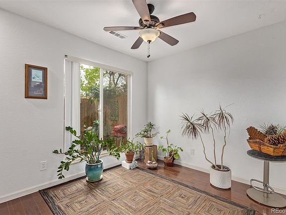 This move-in ready condo in Arvada offers both comfort and convenience. With brand new carpet and bright white paint, the home is fresh and inviting. It is located near restaurants, shopping, walking paths, and is approximately one mile from Stanley Lake and even closer to Arvada’s Volunteer Fire Fighters Park. The property features a quiet and private setting with easy access to everything you may need. The private front patio/entry includes a large pet door, artificial turf, and decorative pavers, which opens to a greenspace. Inside, the open floor plan boasts gleaming real hardwood floors, updated cabinetry, and elegant granite counters, creating a warm and inviting space perfect for entertaining and relaxation. The attached garage offers easy access to main level living, making unloading groceries convenient. The downstairs area includes a half bath, multiple large storage closets, and a washer/dryer. Upstairs, you'll find all brand-new carpet, two bedrooms with large East-facing windows, and a full bathroom with a combined bathtub and shower. Come check out and fall in love with this low maintenance home today.