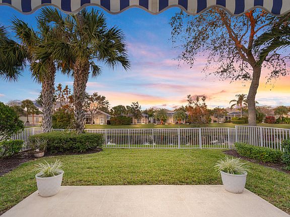 This is your opportunity to live your best life in Villagewalk, an active and fun community filled with gorgeous preserves in the heart of Wellington! Beautiful and UPDATED extended length lakefront Capri model has 2BR/2BA and over 2100 total sq. ft. Upon entering, you will notice the open floor plan with soaring volume ceilings throughout, and the natural light is amazing! Brand new luxury vinyl wood plank flooring throughout every inch of this villa and is truly gorgeous! Kitchen has been updated and so pretty, mission cabinets, black hardware, absolutely stunning quartz on both the counters and the backsplash, open huge deep sink, and newer stainless appliances make this a chef's kitchen for the new owners to love. The entire villa was freshly painted inside and out. Owner's suite offers a large double vanity and walk in shower as well as a massive walk in closet for you to enjoy. Second bedroom is large with a walk in closet. Brand new AC unit inside and out as well! My favorite part of this home is the 20 foot ceilings. They make this nearly 1700 sq. ft. villa feel much larger and brighter. Did I mention this DiVosta home was built with poured reinforced concrete walls and the highest attention to detail for construction quality? The backyard is an outdoor private resort oasis ready for a new owner and perfect for enjoying sunsets across the lake, fishing, or paddle boarding in the lake through the beautiful bridges. An additional value added feature is the potential for income during equestrian season, renting for approximately 6000$-6500$ a month for 5 months each year.