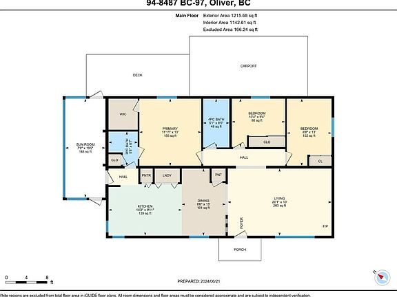 Nestled in the South East corner of the lovely Country Pines, this modern 3 bedroom mobile has a picture perfect setting that only a few select get to enjoy. Backing on the the beautiful bluff rock you get the utmost in privacy, quiet, beautiful greenery and mountain views to enjoy. The lot is one of the largest and has a fully fenced in and manicured lawn, a nectarine & cherry tree, 2 storage sheds, 2 parking spots (1 covered), a spacious covered deck and large sun room to enjoy all the seasons. Inside you'll find 3 bedrooms + 2 bathrooms, an open concept floor plan and U-shaped kitchen; Great for entertaining! The mobile has an abundance of windows for great natural light, including the sky light! Upgrades include new roof, flooring, trim, paint, all pex plumbing, new hwt, bar area, lighting & light fixtures, window coverings, faucets, main bathroom vanity and all toilets, sky light, landscaping, and kitchen; Kitchen updates include the counter, backsplash, sink & upgraded handles. Adjacent is your quaint dining area and spacious West facing living room overlooking a manicured greenspace. The main bedroom is set away from the living room and has a large walk-in closet and a 2 piece cheater bathroom. BONUS - RV parking available and Gallagher Lake beach access only minutes walk away! Restrictions: 55+, pet and rental friendly! Plenty of parking for your golf cart, vehicles and guests. Located 5 min from the District Wine Village, 20 min to Penticton and 7 min to Oliver.