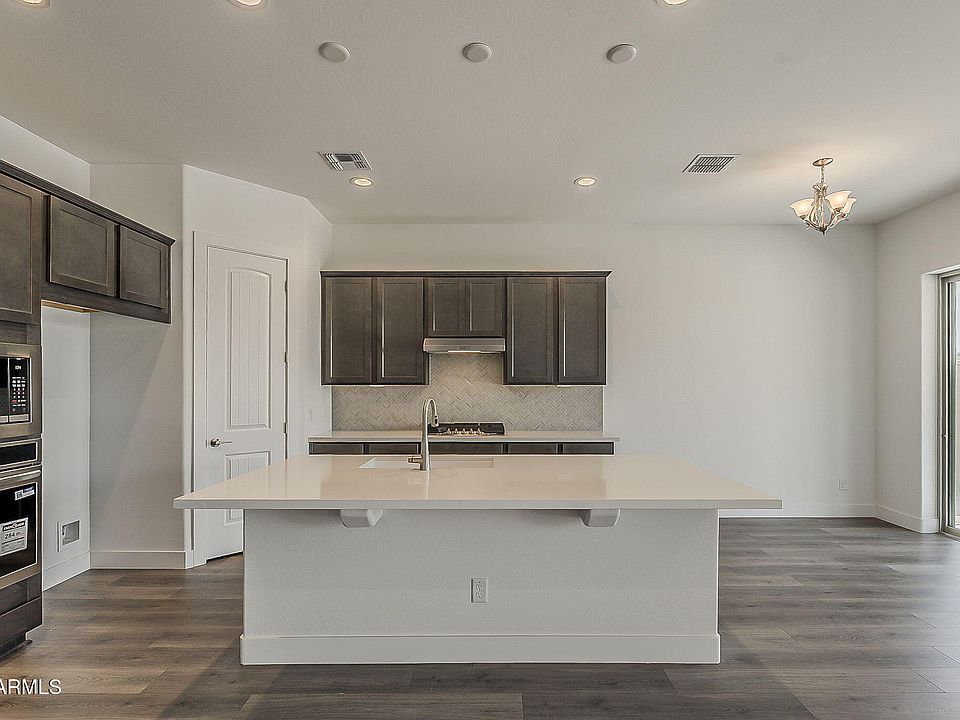 NEWLY RELEASED UNDECORATED FIELD MODEL FOR SALE (real property so it's been listed but is NOW AVAILABLE FOR FULL MARKETING). The only ready-now home with stunning desert sunsets and no rear neighbors. BRAND NEW MOVE-IN READY HOME! BUILDER IS OFFERING BELOW MARKET FINANCING RATES USING BUILDER'S PREFERRED LENDER! ASK ABOUT INCENTIVES INCLUDING SPECIAL FINANCING RATES. THIS HOME WON'T BE AVAILABLE FOR LONG! Enjoy a chef-inspired kitchen with built-in gas appliances, 30'' cooktop, wall oven, quartz countertops, composite undermount sink, and 42'' Barnett Maple Slate cabinets accented by a designer herringbone backsplash. Elegant RevWood flooring, plush carpet with upgraded pad, and executive-height vanities add sophistication throughout.