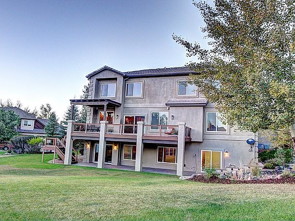 *Accepting back up offers* Price reduced!! 15 month Colorado Home Warranty offered by listing agent. Premium corner lot backing to open space, this custom abode features 5 spacious bedrooms and 5 bathrooms along with over 6500 finished square feet. A vaulted ceiling with a striking stainless chandelier greets you as you enter, leaving imaginable first impressions with lasting anticipation of more to come. A barrel ceiling with hand trowel texture wraps over the dining room and bay window. The semi Modern Contemporary design brings upgrades such as round chandeliers, blown glass pendant lights, black granite counters and a full bar off the family room. Extensive upgrades were made to the master bathroom and basement adding travertine finishes, a frameless shower door, and granite slap countertops in the basement bar. Enjoy nearby trails, parks and horse back riding courses. This house is turn key and ready for you to move in. Watch the YouTube property movie. www.youtube.com/watch?v=1hxDeLh-TS4