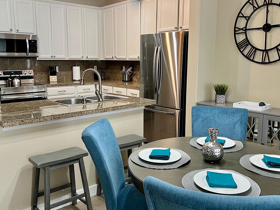 Great for extended stays! FULLY FURNISHED, UTILITIES INCLUDED. Recently updated 3 Bed, 2 Bath condominium with attached garage; Located in a quiet condo community along the Happy Canyon Trail near Parker, DTC, Dove Valley, Centennial Airport, and within walking distance to Rocky Vista University. The kitchen is fully equipped with brand new SS appliances and cookware. Primary bedroom with a king bed and en suite bathroom. Bedroom 2 & 3 each with a queen bed and share a full bathroom. Living area with Smart TV. Office/desk nook. High speed internet/WIFI. In unit laundry. Brand new washer and dryer. Large private balcony overlooking community gazebo and grilling area. Parking includes a one-car attached garage (with private entry to home) and covered carport. Maximum two vehicles on property per HOA. Nearby street parking available on a first-come basis. No smoking inside unit. Pets negotiable. Flexible lease terms. Great for traveling professionals, temporary housing transitions!